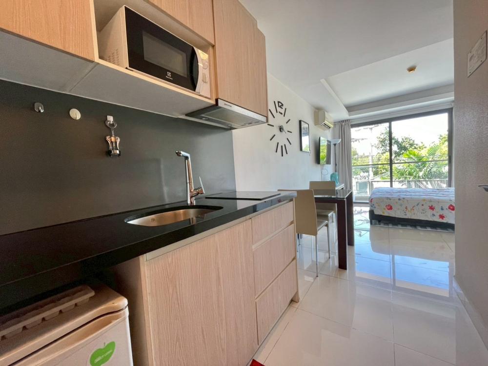 Beautiful and bright fully furnished studio. It’s located in Jomtien, Pattaya. There is well equipped kitchen, bathroom, queen size bed, dining table and balcony. Guests have access to the swimming pools and gym.