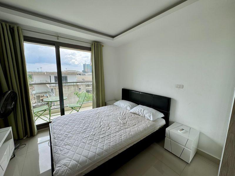Fully furnished studio with queen size bed, bathroom, well equipped kitchen and balcony. Guests have free access to the building facilities: pool and gym.