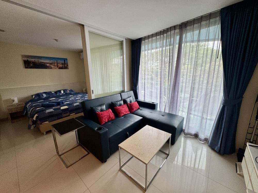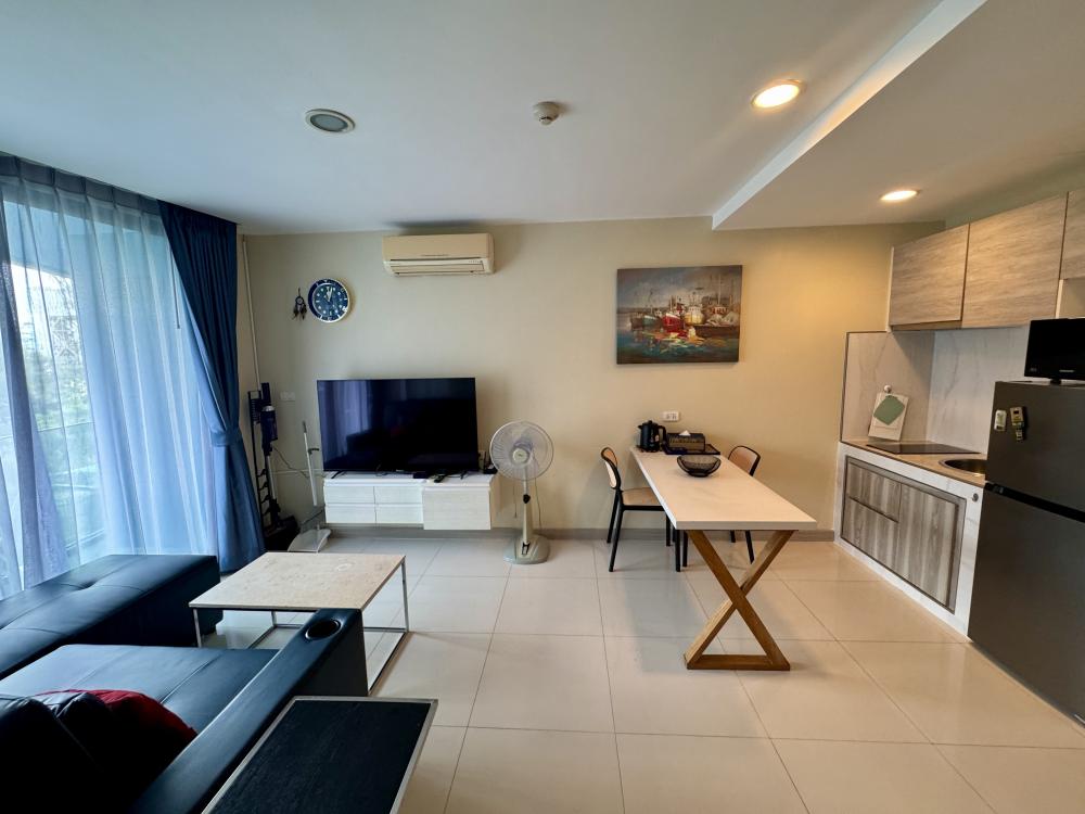 This comfortable 1-bedroom apartment (41.73 sqm) on the 3rd floor of Building A offers a pleasant street and sea-side view, a fully equipped kitchen, living room, balcony with washing machine, and access to resort-style pools, gym, and 24-hour security.